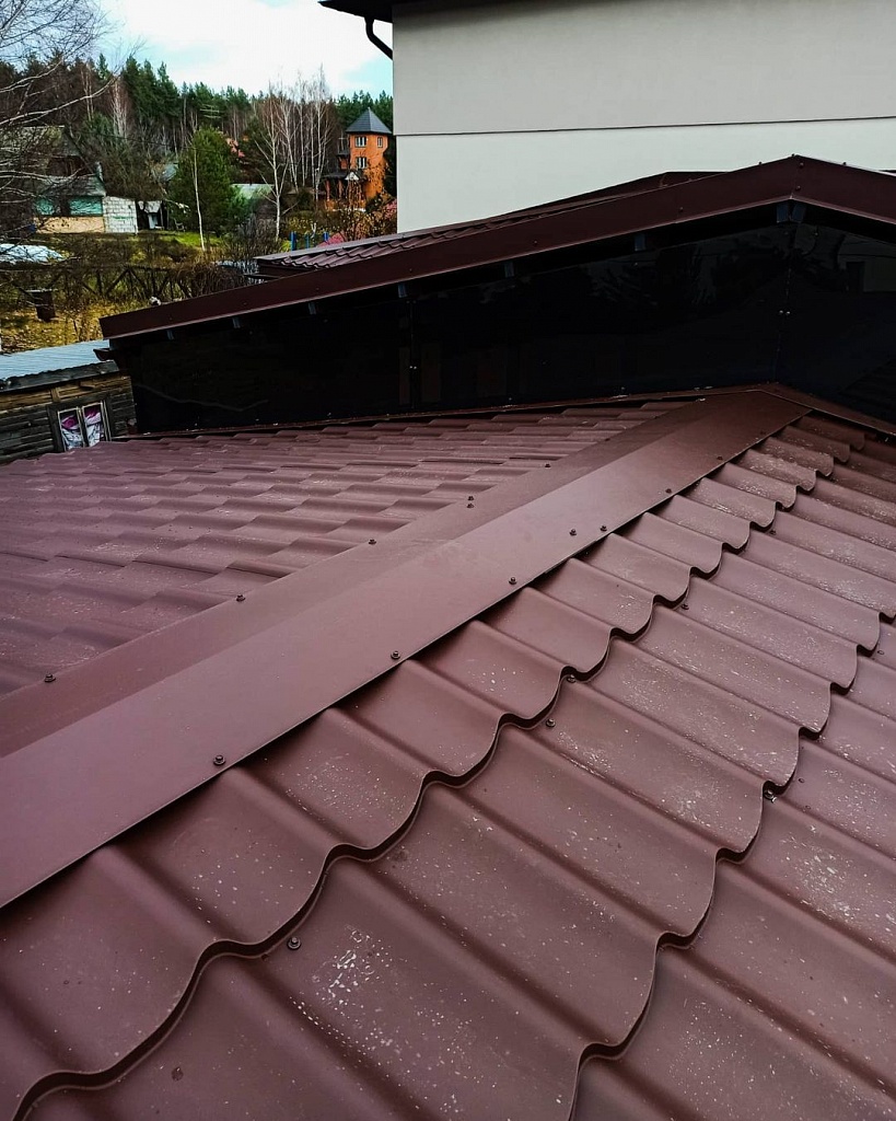 • Покрытие металлочерпицей. Долго сохраняющую защитные свойства крышу обеспечит корректный выбор материала, выполнение монтажа с должным качеством;