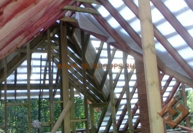 Профессионалы нашей компании выполнят пароизоляцию, вмонтируют гидроизоляцию, утеплят крышу. Следующим этапом работы будет крепление обрешётки и элементов контробрешётки.