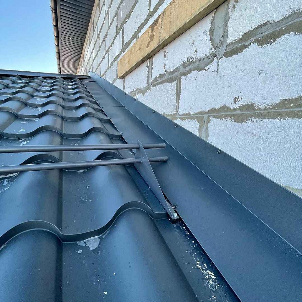 Устройство предназначено исключительно для фальцевой кровли. В наборе имеются комплект крепежей и плоских пластин, заворачивающихся в стоячий фальц без повреждения металла кровли.
